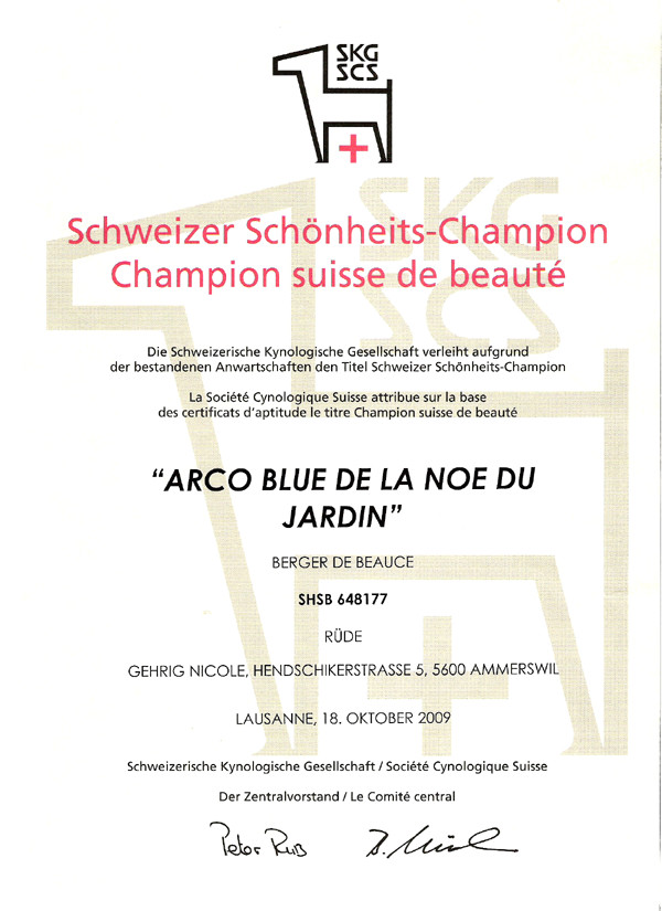 Am liebsten kommt er jeden Tag mit zum Reiten. Er hütet aber auch Schafe und mit Leidenschaft unser Hunderudel. Im Sommer gehen wir auch an diverse Militarys, was ihm ebenfalls sehr viel Spass macht. Hauptsache für ihn ist, dass er überall hin mit darf.HD A/A. Wesenstest in der Schweiz 75,5 Punkte / Frankreich 8/9/8. Im Jahr 2009 wurde er Schweizer Schönheits Champion.Im Jahr 2010 hat er an der National d'elevage in FR Trets in der Offenen Klasse den 1. Platz gemacht was mich sehr berührt hat, so ein Erlebnis gibts nur einmal im Leben. Der absolute Wahnsinn :-)Leider kann er zum Decken nicht eingesetzt werden da seine Spermien nicht gut sind. Was wir sehr bedauern da Arco vom Wesen, Charakter und seiner Ausstrahlung her ein super toller Hund ist.