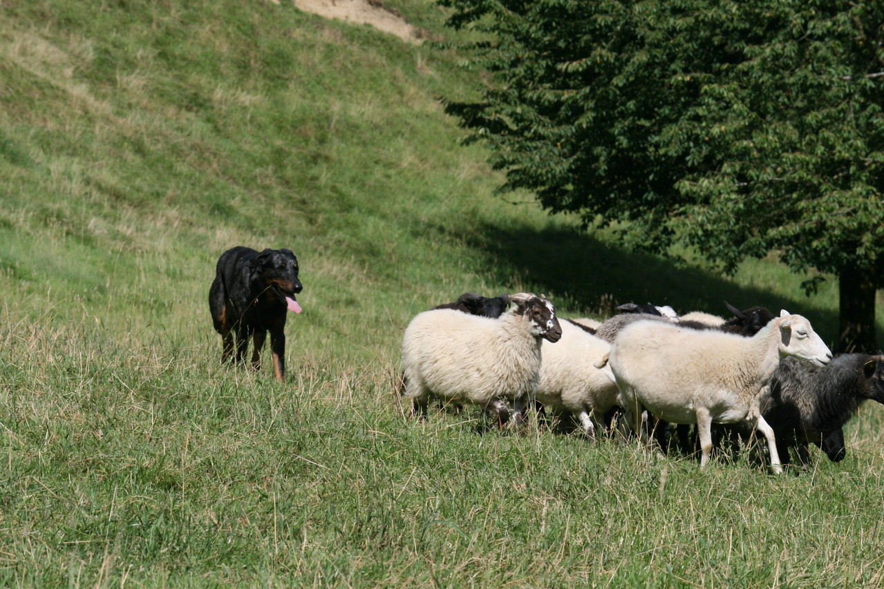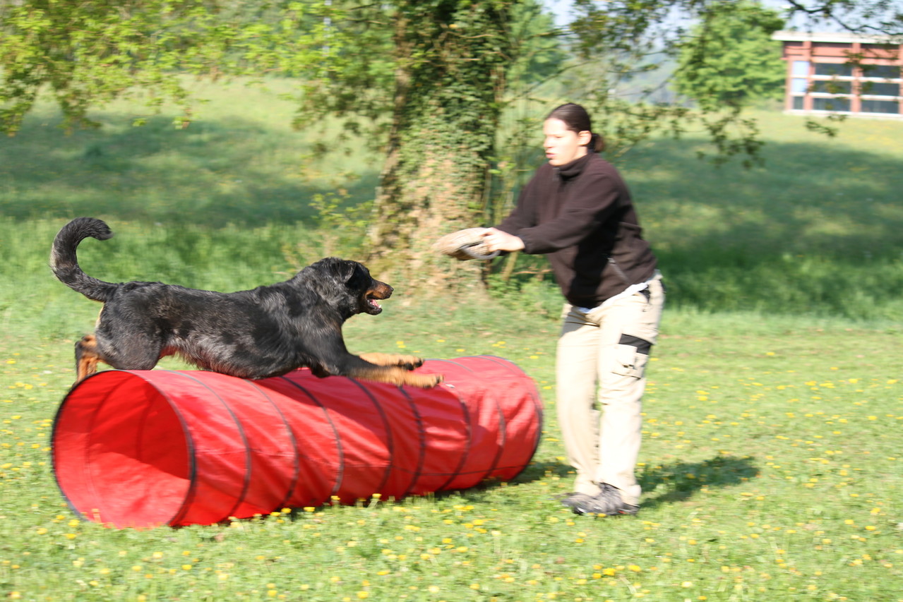 Wir haben auch schon diverse Kurse zusammen besucht. Angefangen hat es mit der Welpenspielstunde, dann folgte der Junghundekurs, nun mussten wir uns entscheiden, wie weiter, also haben wir einen Obediencekurs belegt. Nach bald 2 Jahren haben wir dann gemerkt, dass es noch was anderes geben muss, wir waren einfach nicht glücklich. So versuchten wir es mit Plauschagility, das ist mega und wir haben richtig Freude daran und sind glücklich. Einen angenehmen Nebeneffekt hat es auch noch; Arco kann jetzt auch rechts laufen. Das ist ein grosser Vorteil beim Reiten. Zusätzlich haben wir natürlich auch noch andere Sachen ausprobiert. Kreistraining haben wir bei Monika Giger in unserer Hundeschule gelernt. Es ist eine gute Arbeit zum Muskelaufbau und für lauffreudige Hunde eine super Arbeit zum Auspowern. Ebenfalls bei Monika belegen wir Sozialverhaltensstunden, was vor allem mir in meiner Arbeit mit den Hunden sehr viele neue Türen geöffnet hat. Urs hütet mit Arco Schafe und durfte beim SSDS der RG Nordwestschweiz auch schon eine Vorführung zeigen. Mit unseren Pferden liegt es nahe, dass wir auch schon einen Horse and Dog Trail Kurs bei Claude Mathys besucht haben, was auch sehr spannend war. Ebenfalls das Trickseminar, welches wir bei Alexandra Taetz besucht haben. Den Aufbau zur Führerverteidigung haben wir bei Sonja Steigrad gelernt, wo wir in unregelmässigen Abständen immer mal wieder trainieren. Wir planen auch schon wieder neue Seminare, wo auch unsere Freunde mitmachen, das wird sicher lustig…Momentan im Angebot Circle Game und Plauschagilitykurse unter