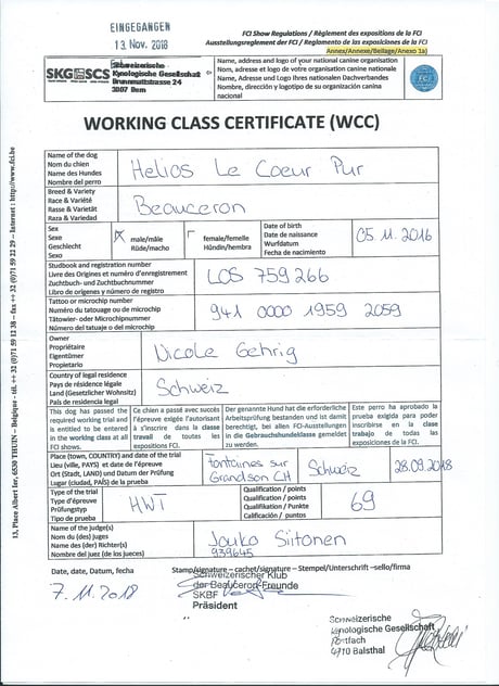 17.11.2018 Ammerswil FCI IHT IHT TS 1 Richter: Steve Jaunin Excellent 3.Rang 90/100