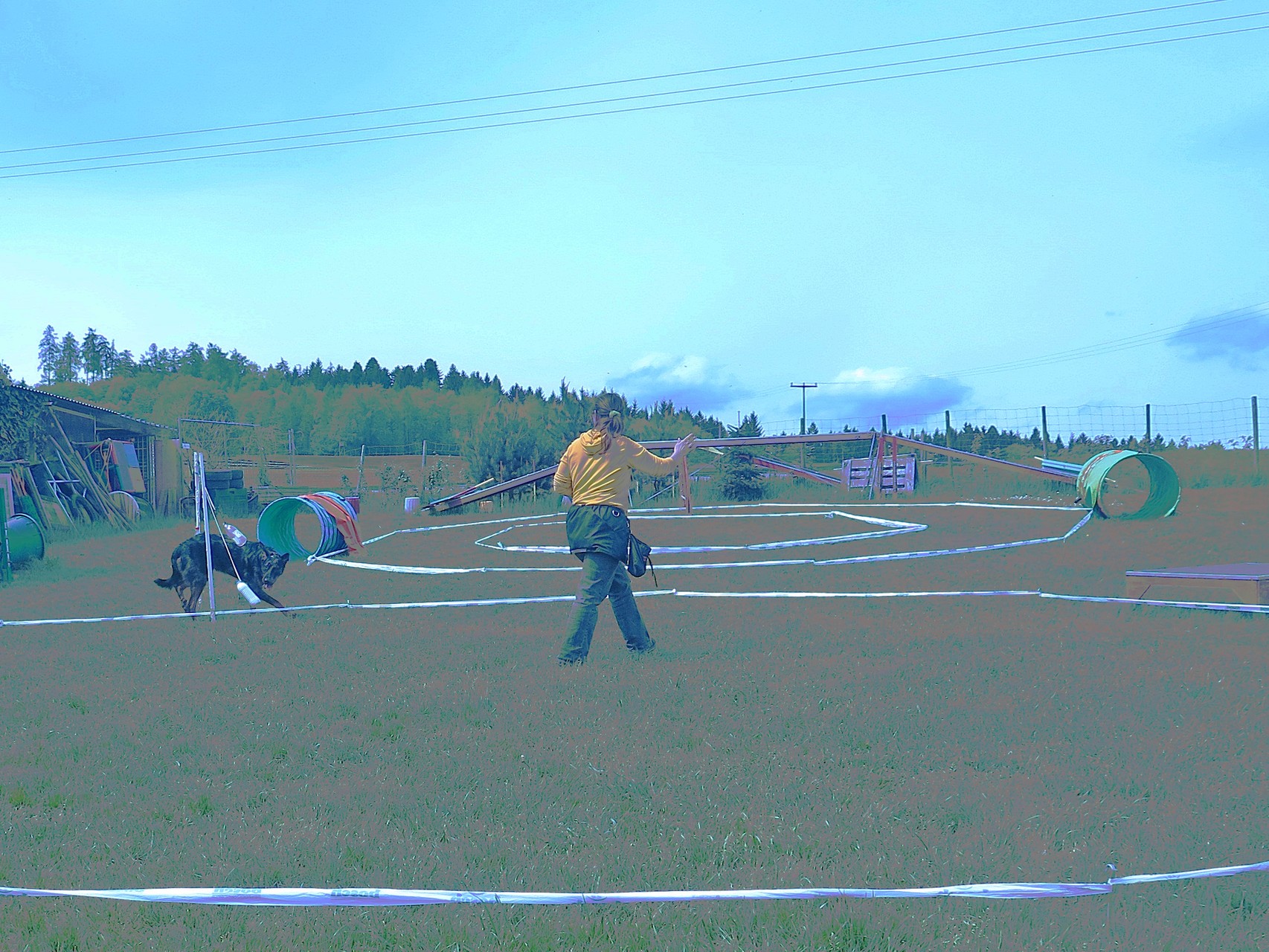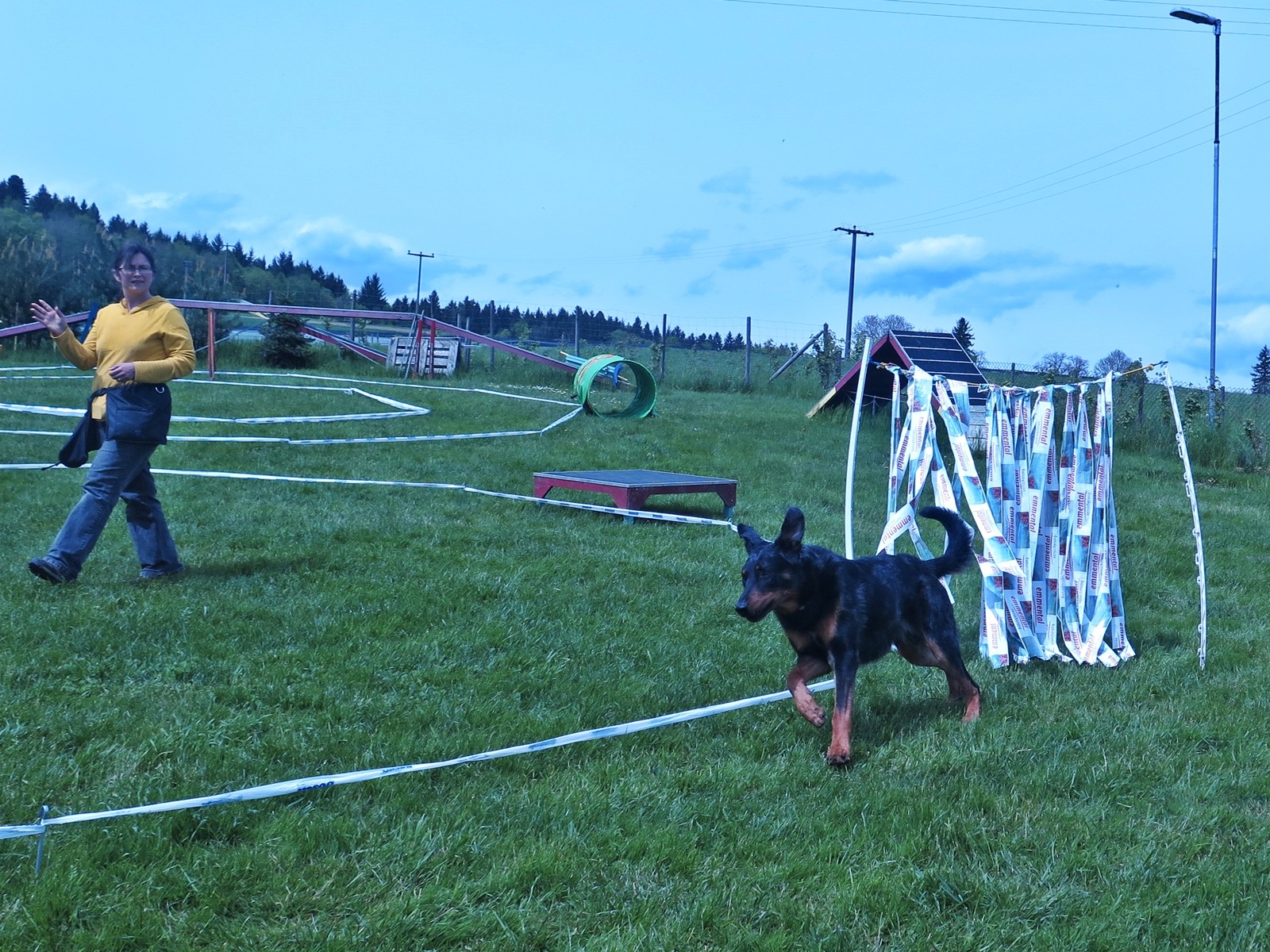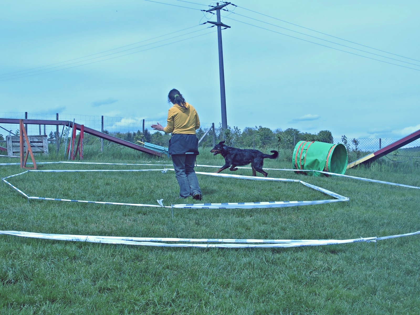 Mit einem Absperrband und Zeltheringen oder Weidezaunstangen wird ein Kreis mit einem Durchmesser von einigen Metern bis hin zu vielleicht 30 m aufgebaut. Der Hundeführer steht im Kreis und der Hund umläuft den Hundeführer entlang des ausgesteckten Kreises. Er darf den Kreis nie betreten.