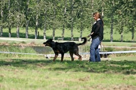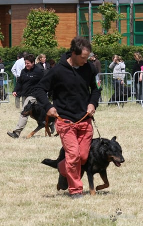 Zuerst kam Arco in den Ehrenring. Es waren 6 Veteranen davon 5 mit coupierten Ohren. Natürlich wurde Arco uncoupiert 6ter, trotzdem war es sehr schön und wir sind stolz auf unseren Senior, hat er gut gemacht. Dann kam Topaz an die Reihe in der Offenen Klasse. Es waren sehr viele Hunde dabei. Auch Topaz hat es weit über unsere Erwartungen geschafft die Cotation 4 zu bekommen. Das ist die höchste Körklasse die ein Beauceron in Frankreich, in eigener Regie erreichen kann. Topaz kam nicht in die Ränge, da er auch mit 2 ¾ Jahren noch sehr jung ist.