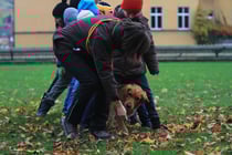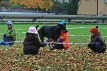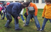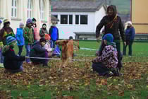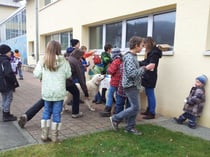 Nachdem die 3.-5. Klasse sich in den letzten Wochen ausgiebig mit dem Thema Hund auseinandergesetzt hatte, besuchten Nicole und Urs mit ihren Hunden Arco, Enya und Topaz sowie ich mit Ronja und Honey die Kinder. Das abwechslungsreiche Programm bot Einblick in die Arbeit des Sanitätshundes, ins Circle Game, die Dummyarbeit und was man einem Hund so alles beibringen kann. Das wichtige Thema "Wie verhalte ich mich bei einem Hund" wurde ebenso gemeinsam erarbeitet. Mit Begeisterung machten die Kids bei den Übungen mit Hund mit, sei es als zu findender "Verletzter", Dummywerfer, lebendes Tunnel bzw. Slalom oder Halter für Sprünge. Bevor es Punsch und Kuchen gab, wetteiferten die Kinder beim abschliessenden Quiz um beliebte Süssigkeiten und konnten alle Fragen beantworten.