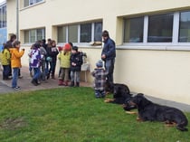 Ein wichtiges Anliegen ist es uns auch den Kinder das wichtige Thema "Wie verhalte ich mich richtig gegenüber einem Hund" anschaulich näher zu bringen. Sehr zur Freude der Lehrerin Frau G. Köchli, die feststellen konnte, dass die Kinder das am Morgen besprochene aktiv einbrachten.
