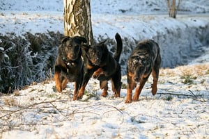 Eines Tages vor etwa 12 Jahren lief mir dann der erste Beauceron über den weg er hiess Merlin, ich war sofort fasziniert von ihm ein sanfter Riese einfach wunderschön. Mein kleiner Briard war ja noch also nahm ich mir vor wenn einmal wieder die frage auftaucht was für ein Hund dann ohne Zweifel ein Bas Rouge. So ging es dann noch weitere 4 Jahre ohne Beauci weiter, dann kam der Zeitpunkt der Entscheidung plötzlich schneller als gedacht. Also hab ich mich nach einem Beauceron umgehört leider war grad kein Wurf in der nähe und wenn dann nur Hündinnen tja das kam für mich nicht in frage. So kam ich durch eine Freundin zu einer Züchterin aus Frankreich die bald einen Wurf erwartete. Gespannt warteten wir nun auf die Welpen ob jetzt doch endlich ein schöner Rüde für mich dabei war. Tja leider erst mal die Entäuschung, Rüden ja aber nur Harlekin hm schwere Entscheidung ich ging in mich und