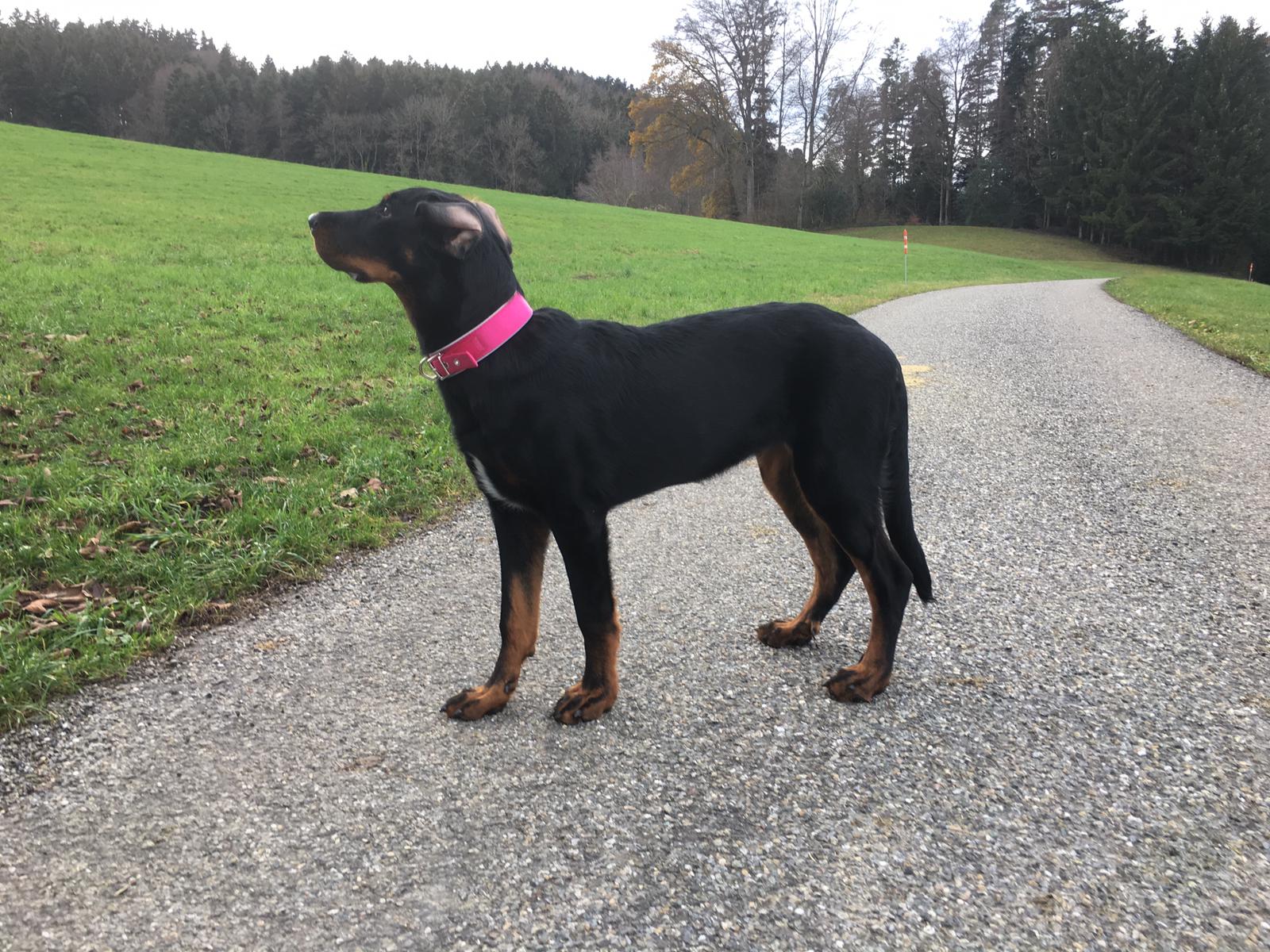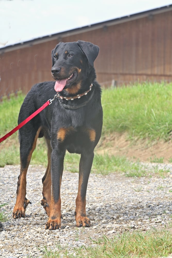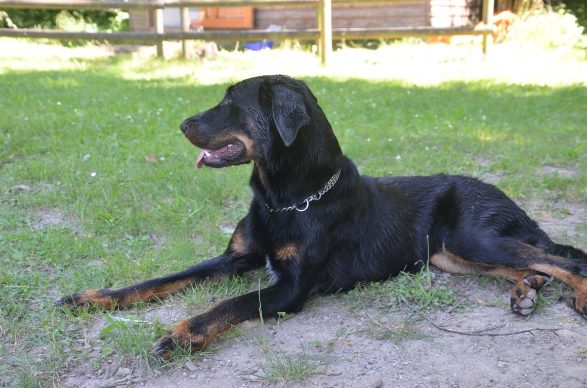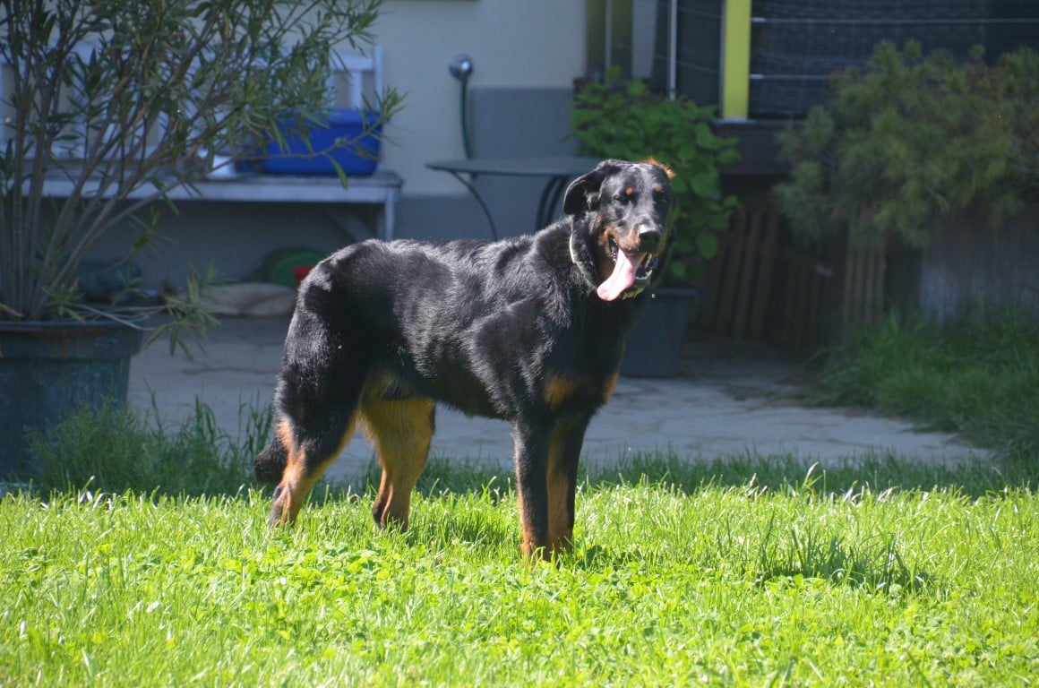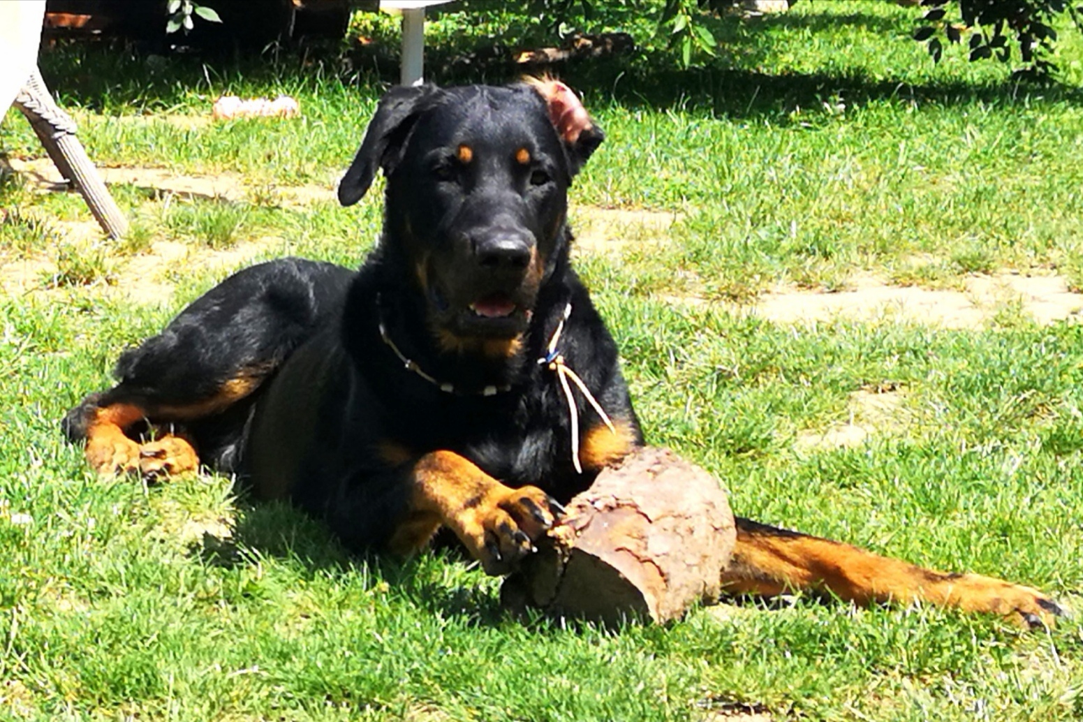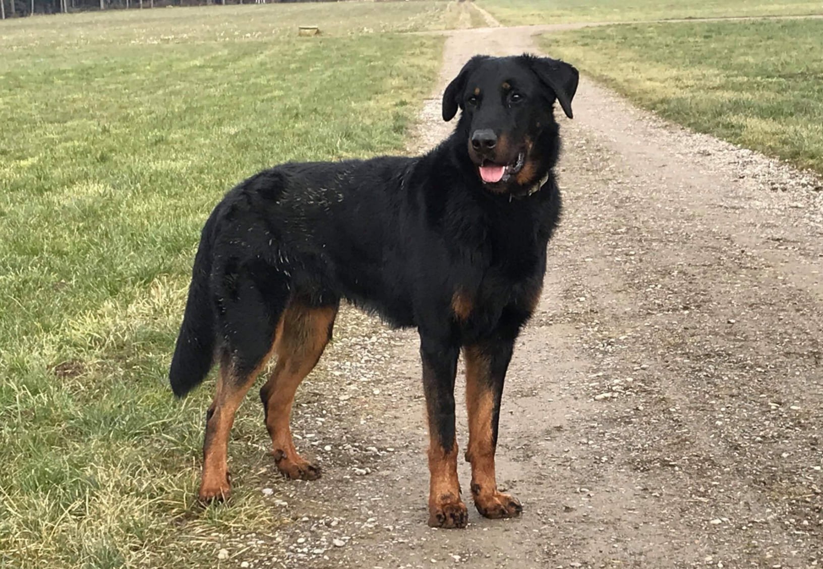 Er wohnt da mit Shakira einer älteren Beauceron Hündin