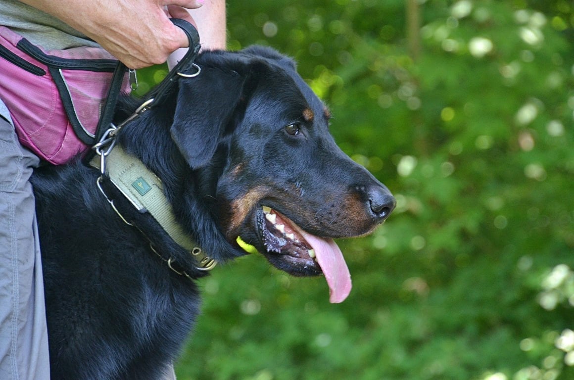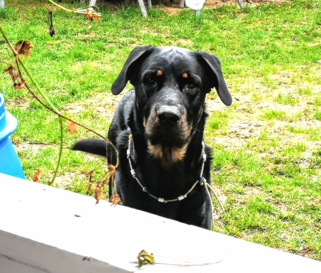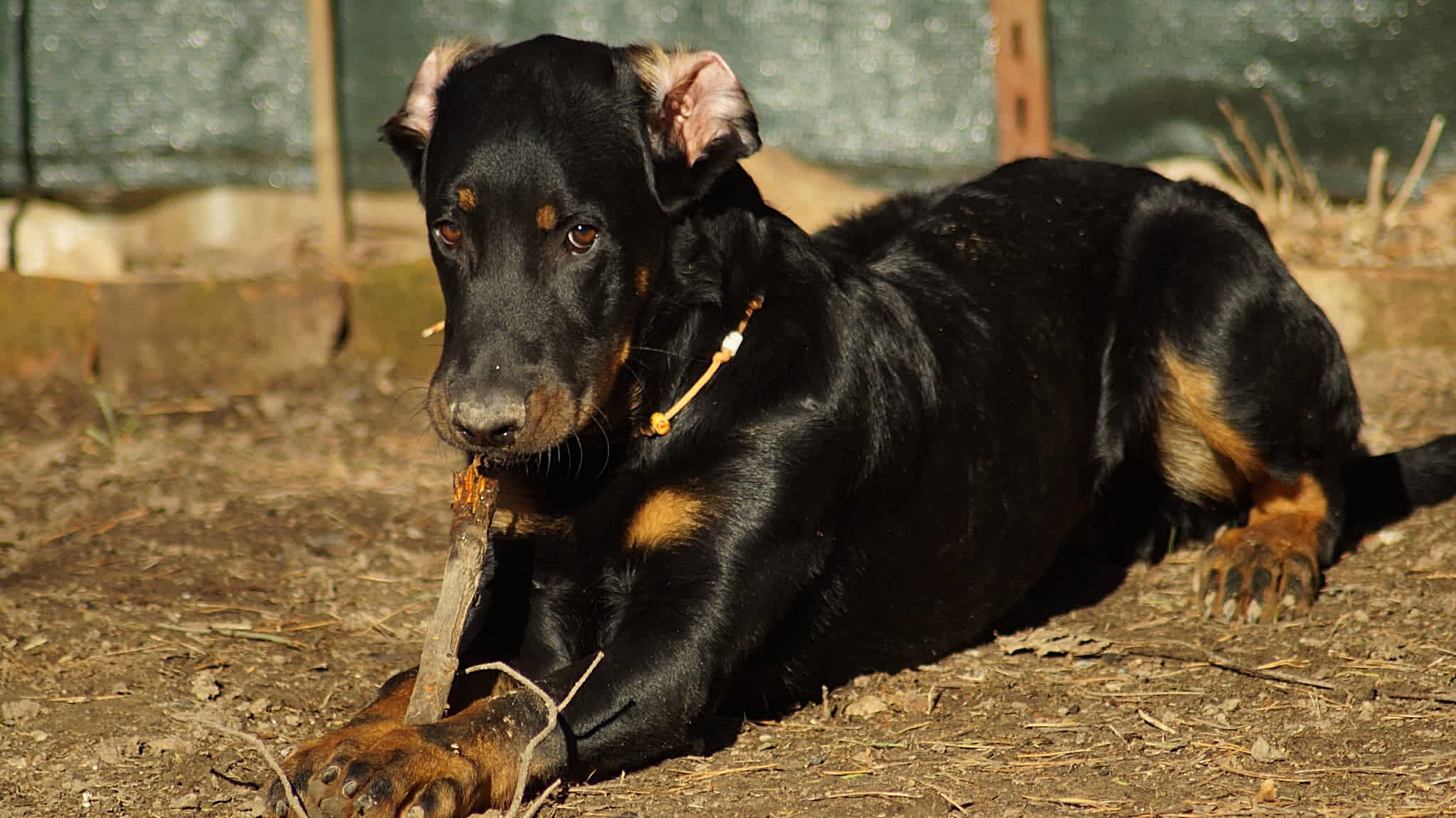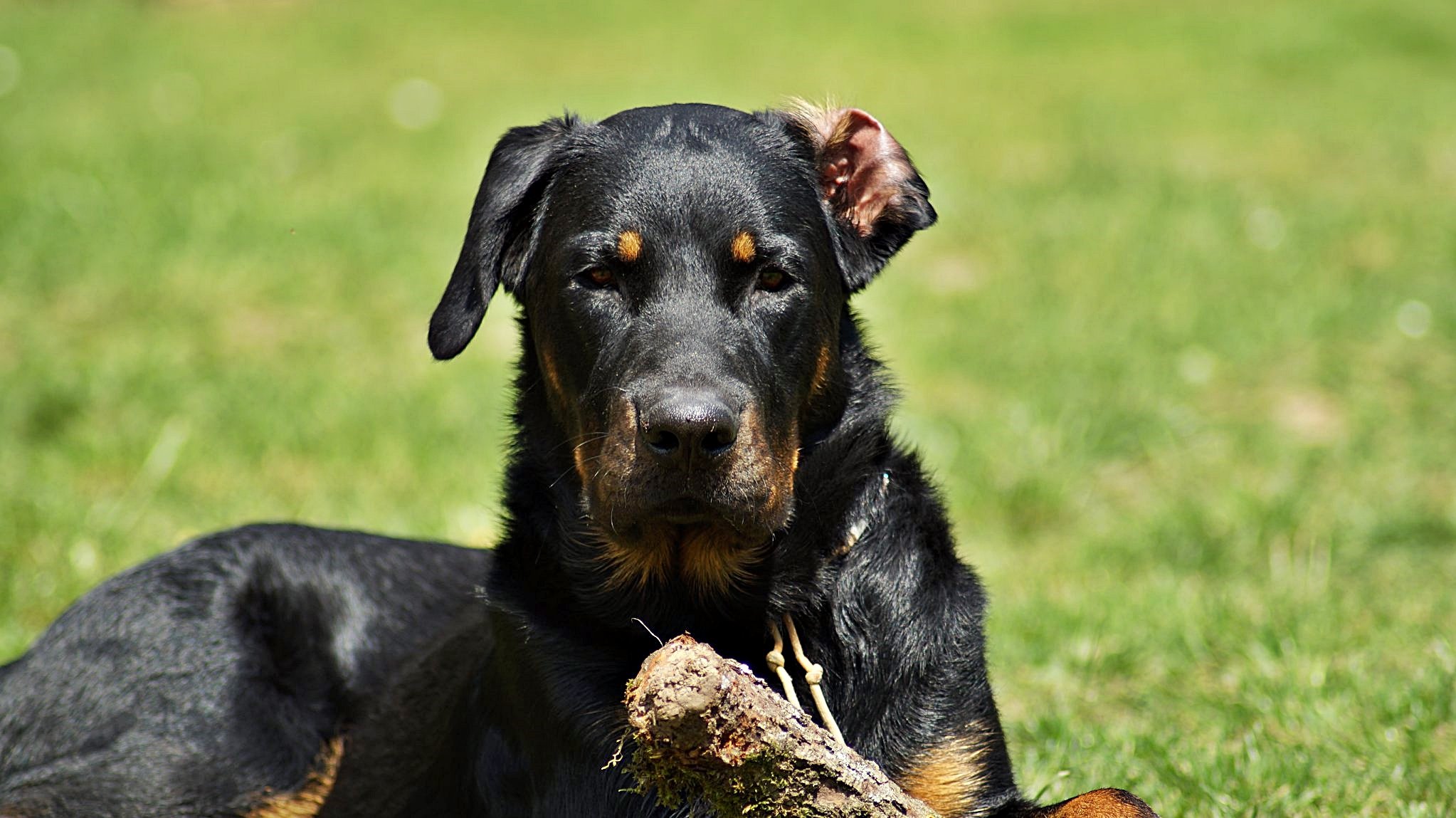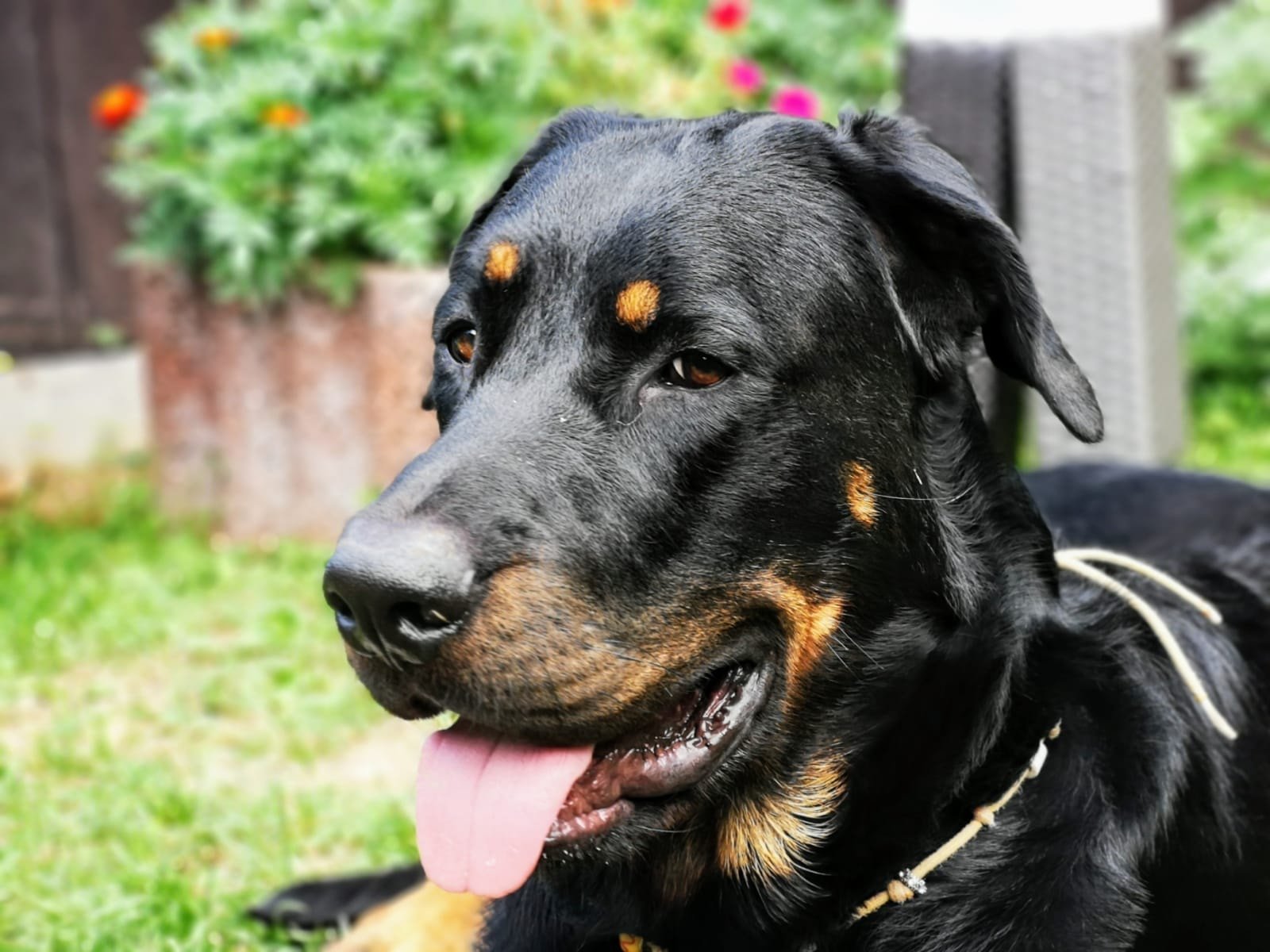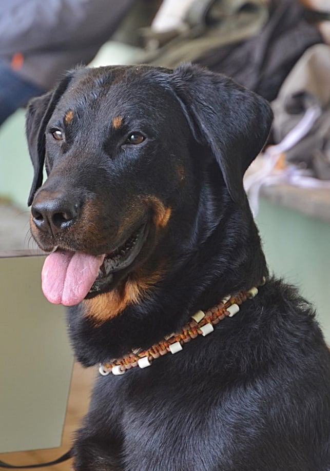 Er wohnt da mit Shakira einer älteren Beauceron Hündin