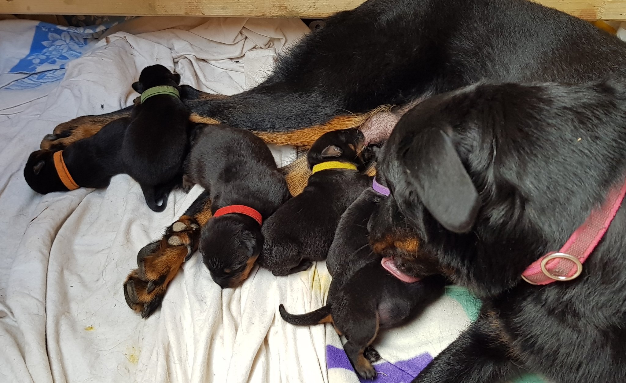 Cora hat am 8.8.2019 6 gesunde Welpen zur Welt gebracht 5 Hündinnen und 1 Rüden.