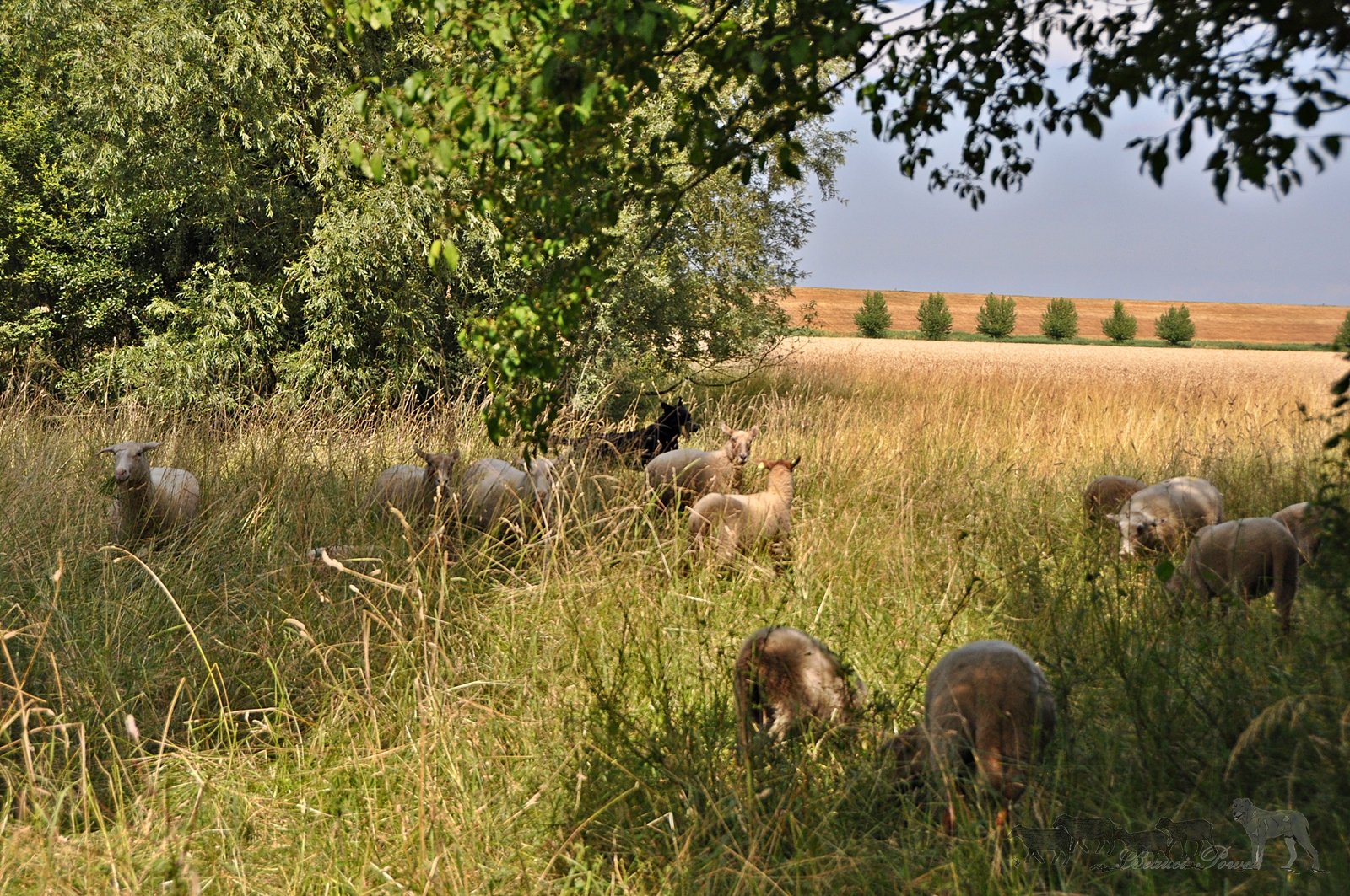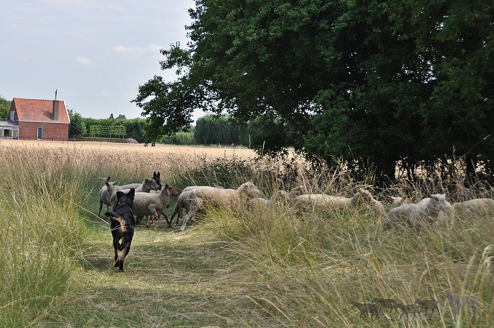Parallel dazu wird der Grundgehorsam trainiert, wenn dieser zu 110% sitzt, geht es an das Furche laufen. Dabei traben die Hunde entlang einer Weidegrenze auf und ab,