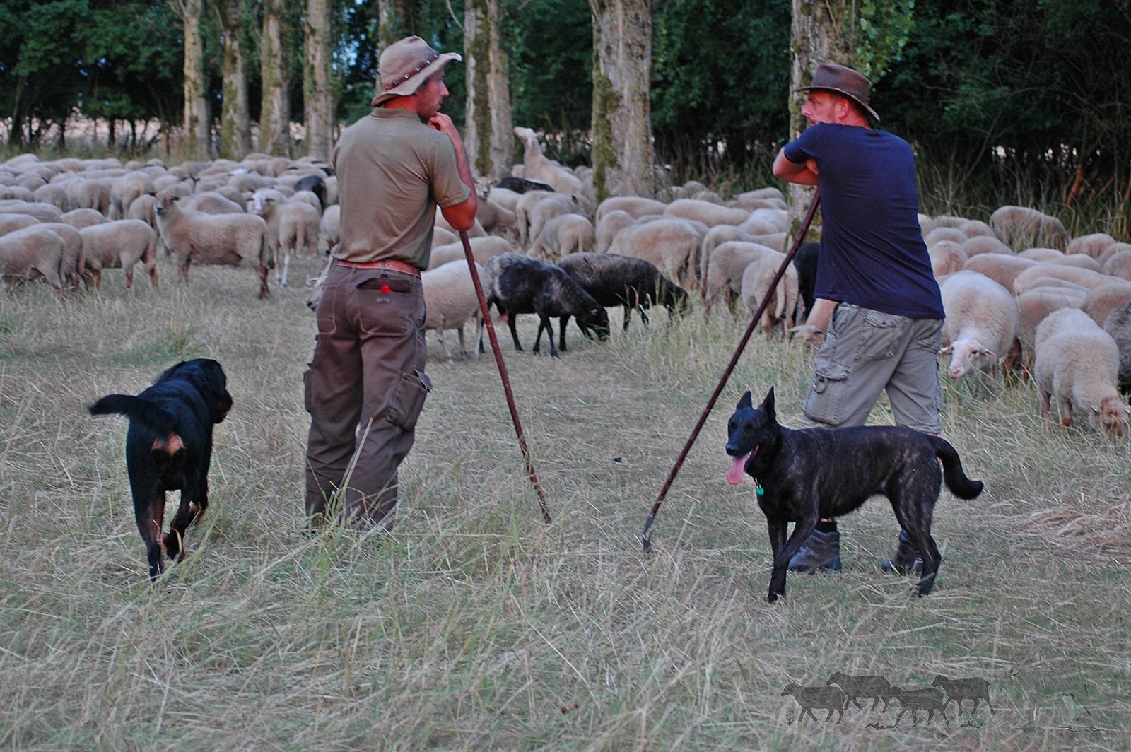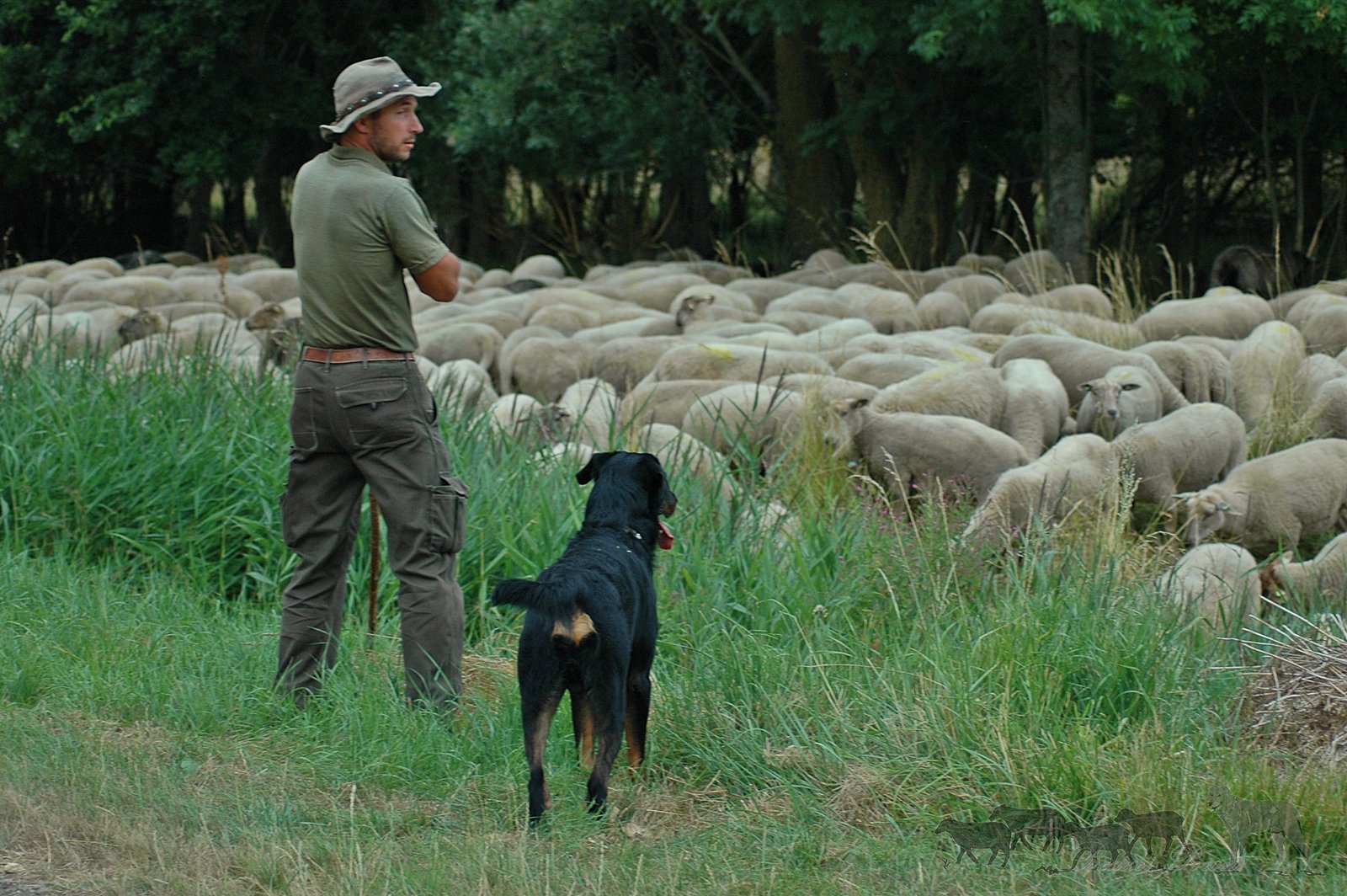 frisst. Wenn der Hirte weiterziehen möchte, ruft er eines der Leitschafe der Herde zu sich und zieht weiter, während die Hunde weiter Weidegrenzen oder Übergänge sichern